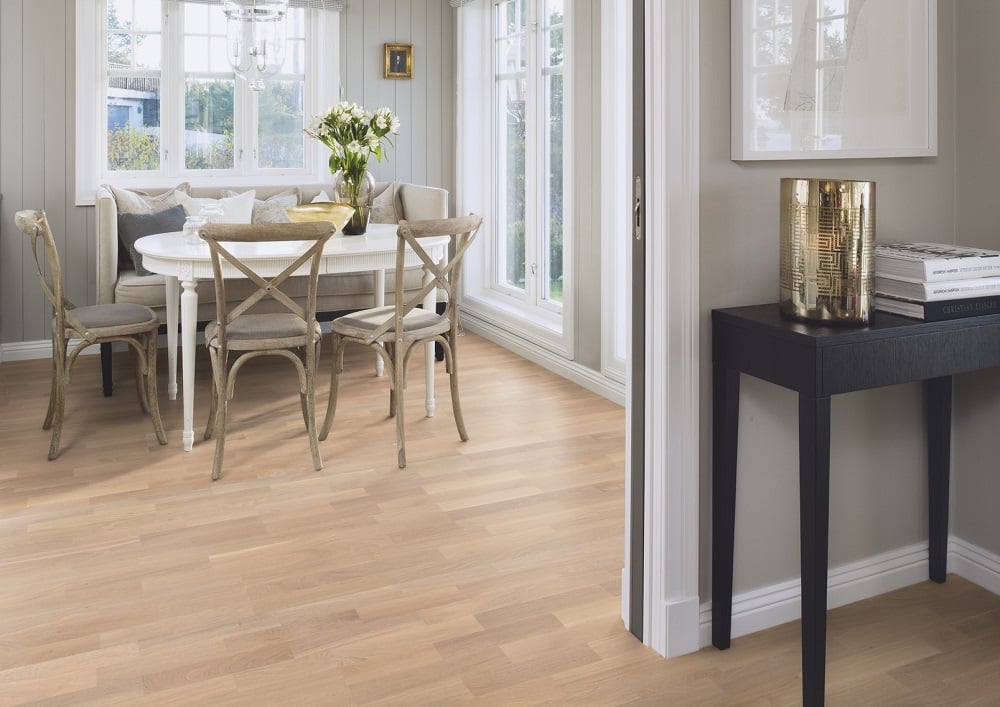 Meist als Fertigparkett mit Klicksystem erhältlich und kann daher sowohl schwimmend verlegt oder vollflächig verklebt werden.